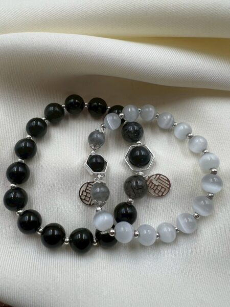 髮晶的魅力與行動力,配上黑曜石的深邃與福字的庇佑,讓你平靜迎接每一個明天。