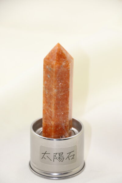 選用天然太陽石能量柱,晶體中閃爍金橙光澤,