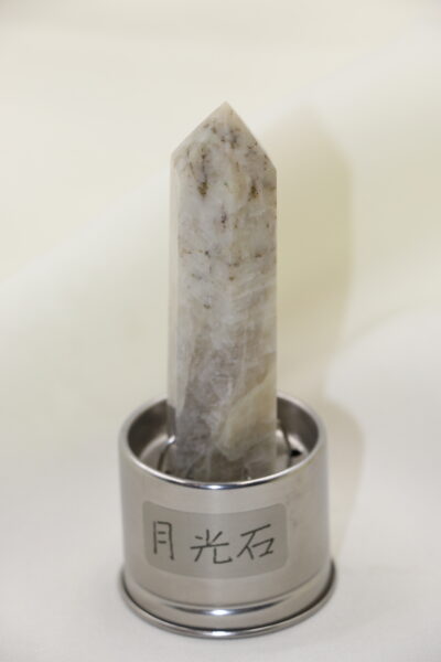 選用天然月光石能量柱,晶體呈現柔和乳白光暈,
