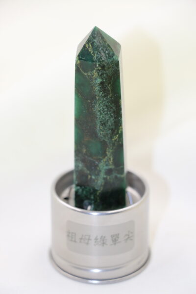 選用天然祖母綠單尖能量柱,晶體呈現清透綠色光澤,