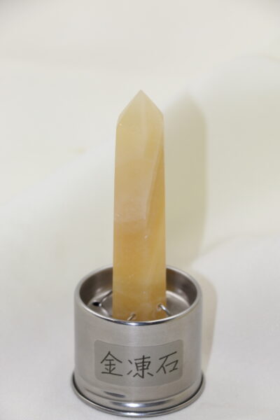 選用天然金凍石能量柱,晶透中閃爍金絲光澤,